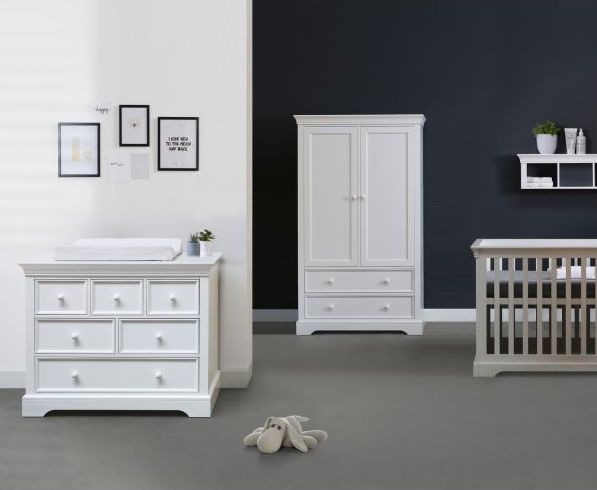 De babykamer Chateau straalt een tijdloze en eenvoudige landhuisstijl uit, met gegarandeerde duurzaamheid en elegantie. De commode kan eventueel later worden verplaatst naar de woonkamer of een andere ruimte dankzij het veelzijdige design. De meubelserie Chateau combineert MDF en vurenhout voor een robuuste en betaalbare kwaliteit met onderhoudsvriendelijke, gelakte oppervlakken die bijna ongevoelig zijn voor krassen. De commode verdient bijzondere aandacht vanwege de doordachte indeling van laden van verschillende afmetingen, wat praktisch en gemakkelijk toegankelijk is van bovenaf.