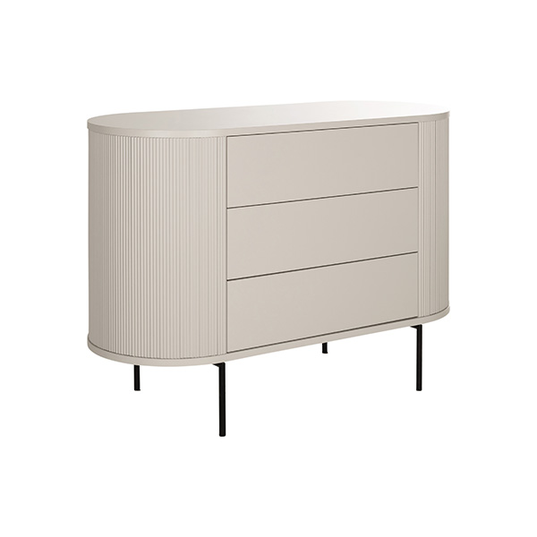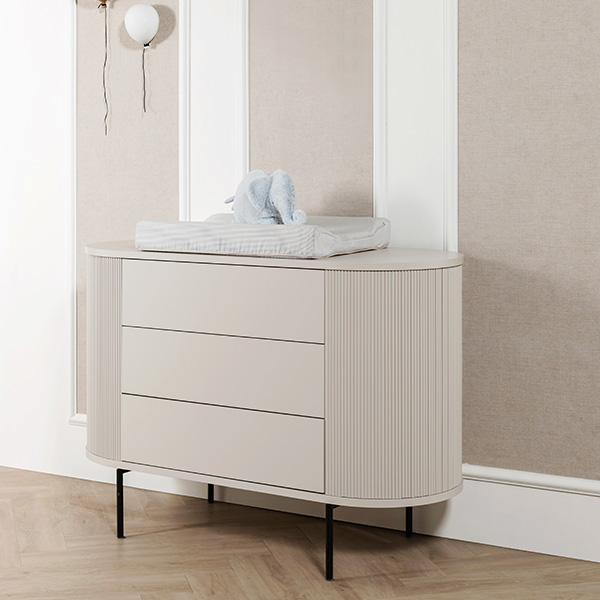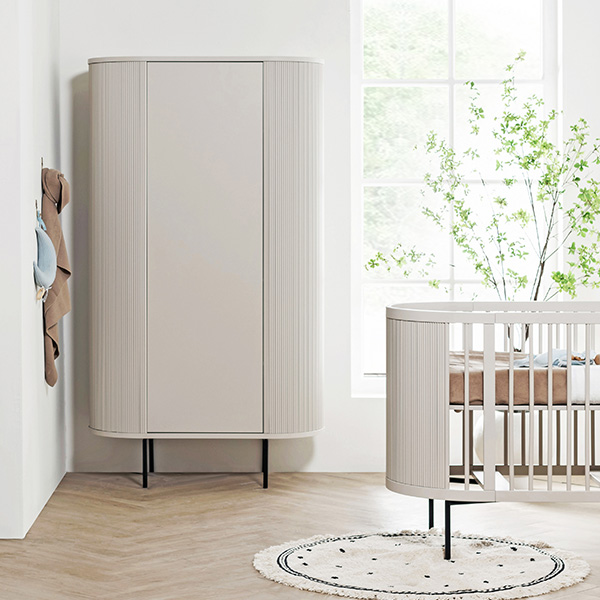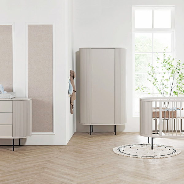 De stijlvolle Sense oatmeal babykamer combineert een warme oatmeal kleur, ronde vormen, hoogwaardige materialen en handige functies zoals het “Push open” systeem.