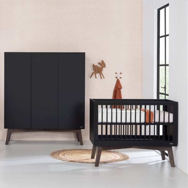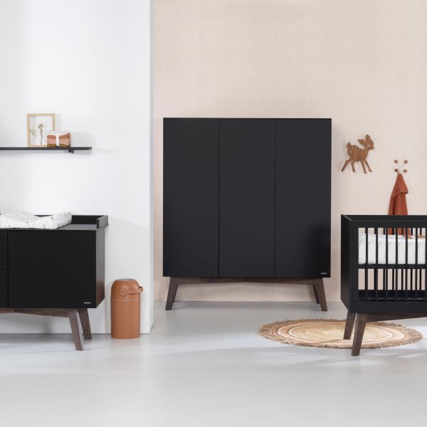 Met de babykamer Sixties breng je stijlvol design in je huis. De strakke meubels van de Sixties Babykamer zijn minutieus afgewerkt en bestaan uit hoogwaardig MDF en plaatmateriaal, terwijl de poten zijn gemaakt van eikenhout. Alle bewegende onderdelen zijn uitgerust met het handige “Push open” systeem. Bovendien wordt het ledikant geleverd met een peuterzijde, zodat je kindje (wanneer het oud genoeg is) veilig zelfstandig uit het bedje kan klimmen. Het wandrek is strak van stijl en erg handig om aan te schaffen bij de commode, zodat alle verzorgingsspullen voor jouw kindje binnen handbereik staan. Met de bladvergroter creëer je meer ruimte op het bovenblad van de commode.